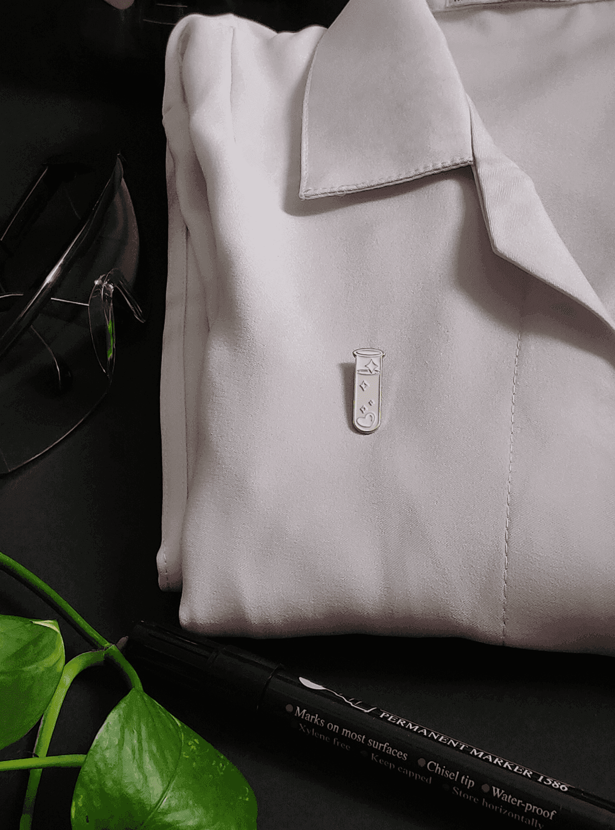 دبابيس زينة أنيقة للملابس بأشكال وأنماط كيميائية.
